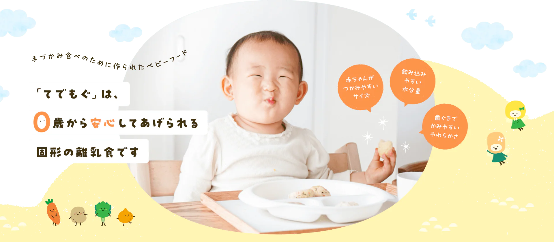 TEDEMOGU(てでもぐ)|赤ちゃんの「自分で食べたい」を応援する宅配ベビーフード